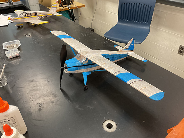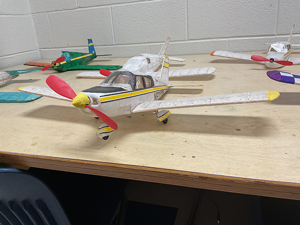 Scott also pushes his students to look beyond the workbench. Each model ties into aviation history, whether it’s a WWI Fokker Eindecker, WWII bombers and fighters, or civilian classics like the Piper Cub and Cessna. Researching the plane they’re building makes the project richer and more personal.