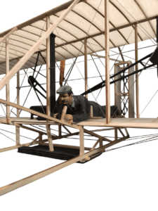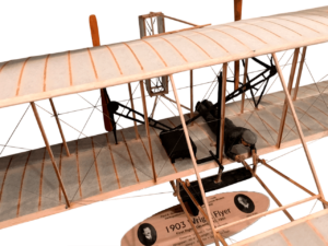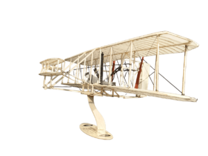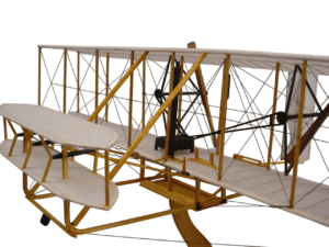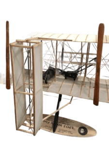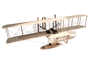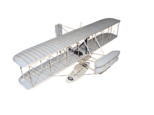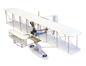 This museum quality scale model kit has a 24″ wingspan and over 150 laser cut parts. It includes all the balsa wood, tissue, thread, etc to construct the replica of the FIRST powered, heavier than air machine to achieve pilot controlled sustained flight. Don’t miss out on building this piece of aviation history!!