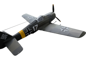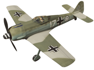 Although it had a radial engine, the German Focke-Wulf Fw-190 was one of the most beautifully proportioned fighters of World War 2. The pride of Marshall Goering, the 190 maintained superiority over the British Spitfire 5 for almost two years because it could out fly its opponent on nearly every count. Approximately 20,000 Focke-Wulf’s were produced and, in various versions, were used as day and night fighters, fighter-bombers and in ground attack roles. One feature of the 190 was its wide track under carriage, which gave it, improved ground stability over the BF-109’s.