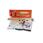 The kit contains LASER CUT balsa parts, plastic propeller & wheels, detailed stick on wing covering and rubber band motors. All you will need to complete the model is glue and wire cutters!