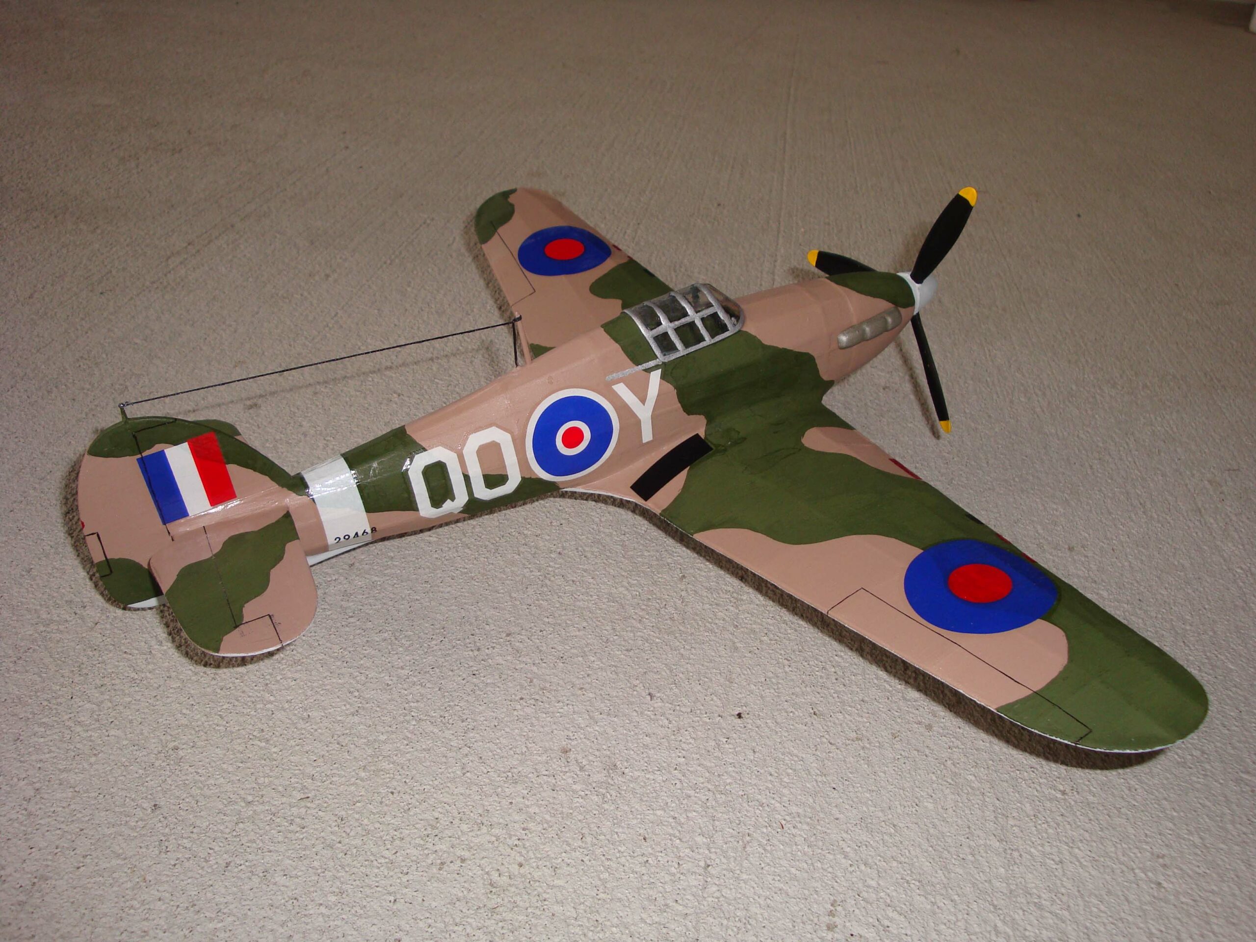 During the famous Battle of Britain, more than three-fifths of the R.A.F. Fighter Command’s squadrons used Hawker Hurricanes. This immortal partner of the Supermarine Spitfire destroyed the German bombers while the Spitfires engaged the Messerschmitt BF-109’s. The Hurricane was the first combat aircraft capable of exceeding 300 M.P.H., and it became the most versatile single-seat warplane to emerge from World War 2. This plane was used in the Western Desert conflict as a fighter-bomber and a modified version, called the Sea Hurricane, became the first single-seat fighter to serve with the Fleet Air Arm.
