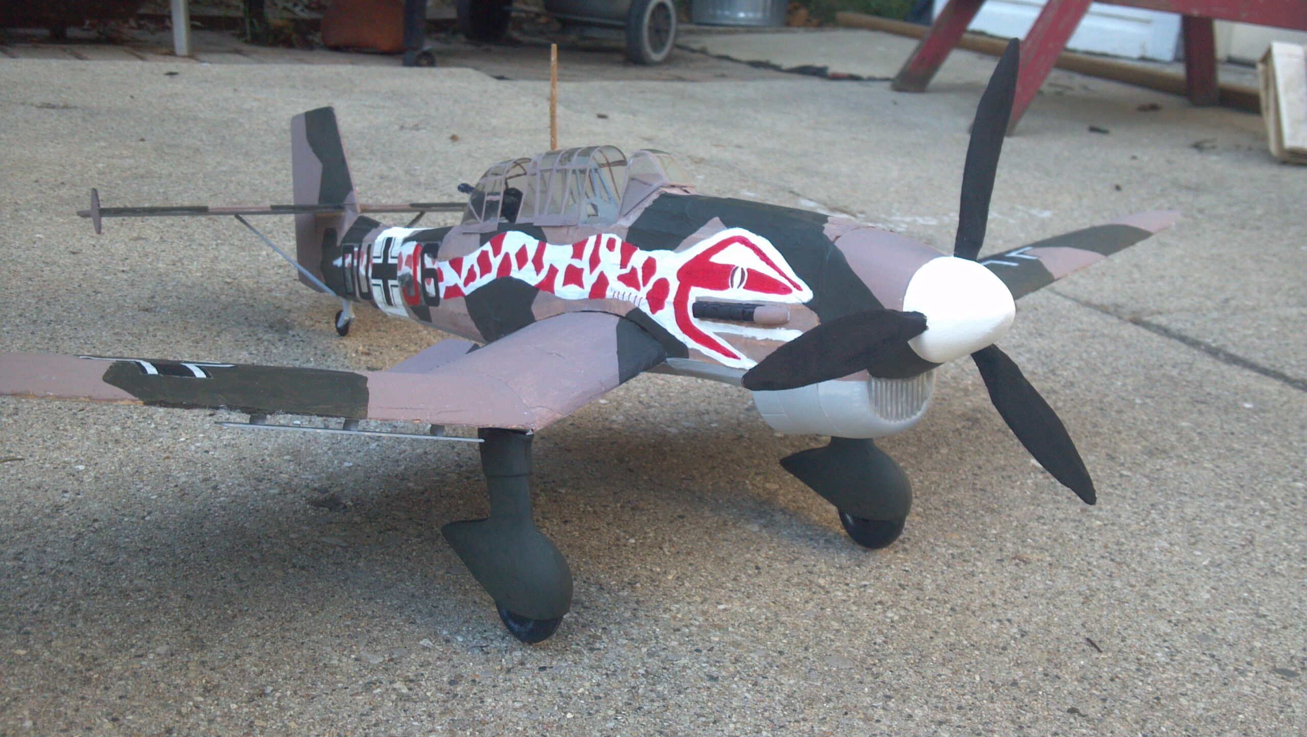 It looks so good so it’s hanging in my ceiling now. I painted it in Winter camouflage from the Russian front 1942. This model is a JU 87