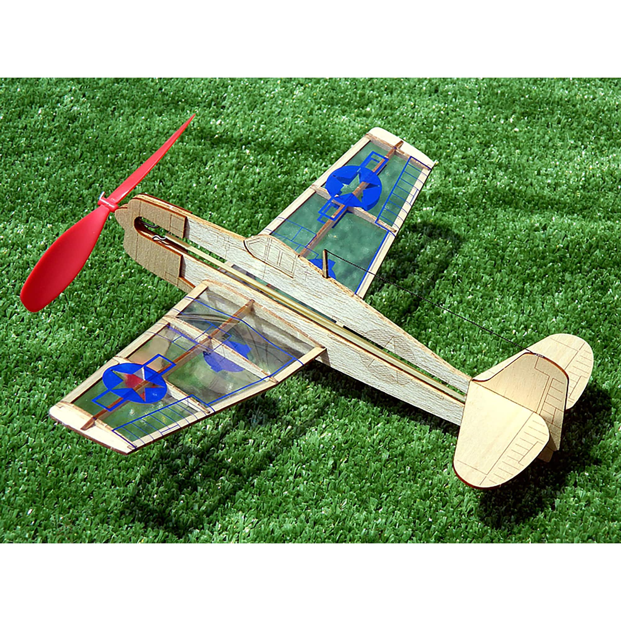 The kit contains LASER CUT balsa parts, plastic propeller & wheels, detailed stick on wing covering and rubber band motors. All you will need to complete the model is glue and wire cutters!